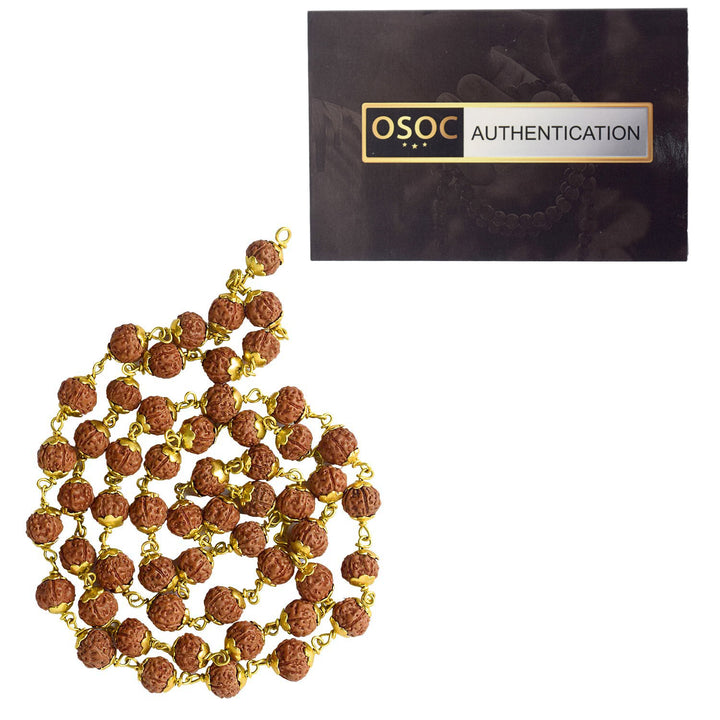 • Material:  Original 5 Face Natural Rudraksha Mala with Brass Capping Beads