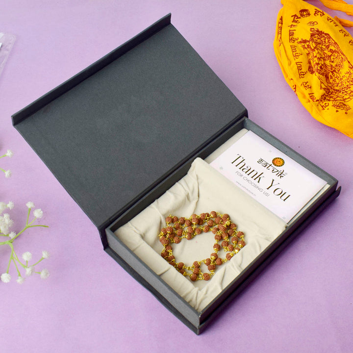 100% Original & Certified 5 Mukhi Face Natural Rudraksha Mala with Brass Capping