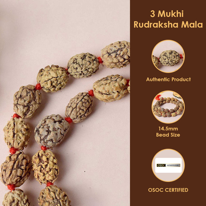 Buy 3 Mukhi Rudraksha Kantha Mala | Buy online | Satvikworld.com