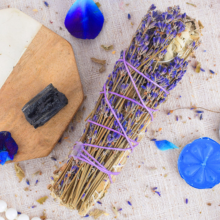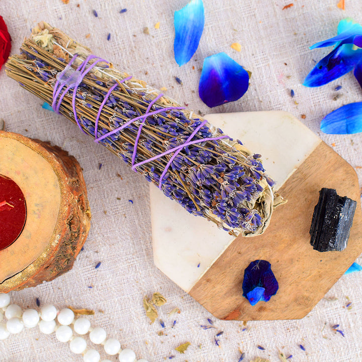 WHITE SAGE WITH LAVENDERS & BLACK TOURMALINE CRYSTAL HEALING SMUDGES – Satvikworld.com