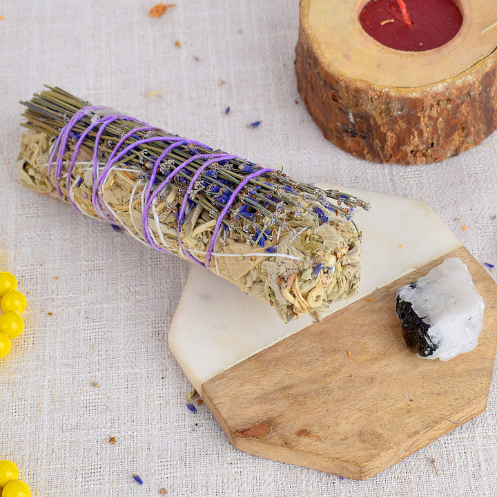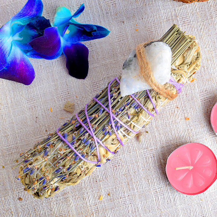 WHITE SAGE WITH LAVENDERS & RAINBOW MOONSTONE CRYSTAL HEALING SMUDGES – Satvikworld.com