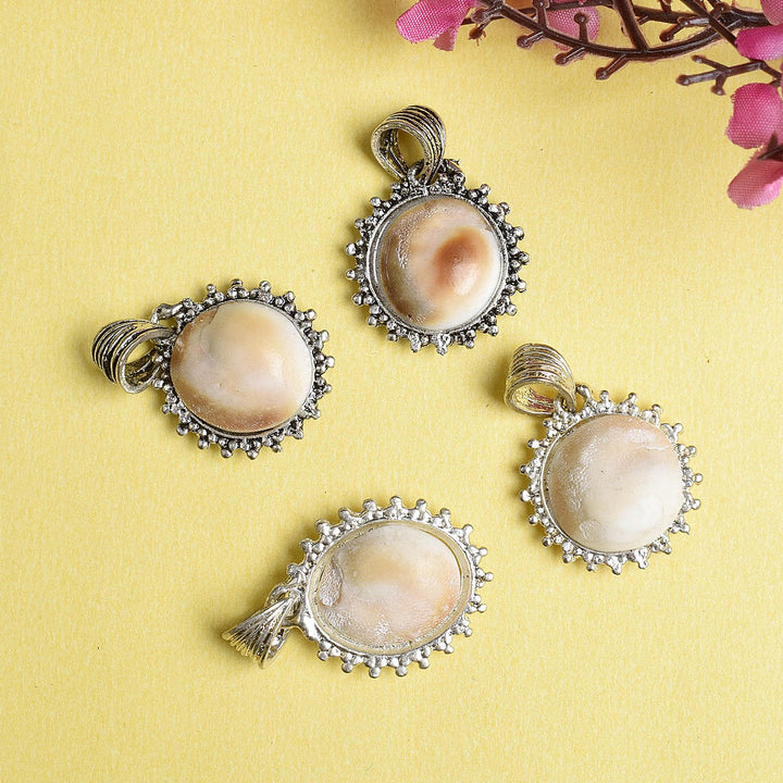 One side of the gomati chakra Pendent is elevated like a shell while the other side is flat with circular design like whirl which looks like a snake. Gomti chakra Pendent is a rare natural and spiritual product, a form of shell stone.