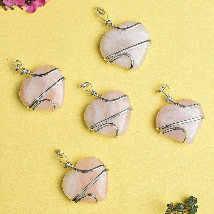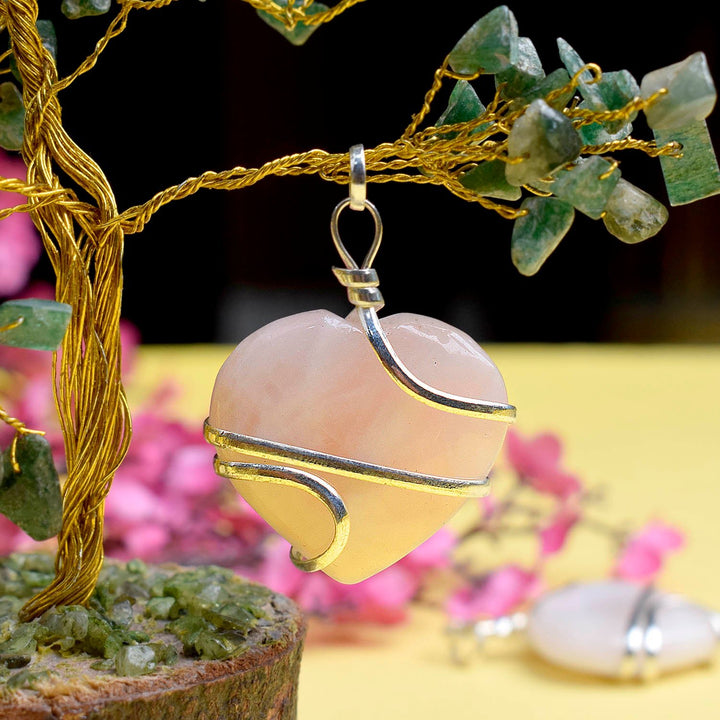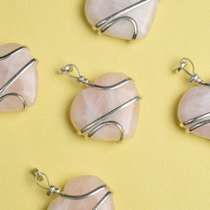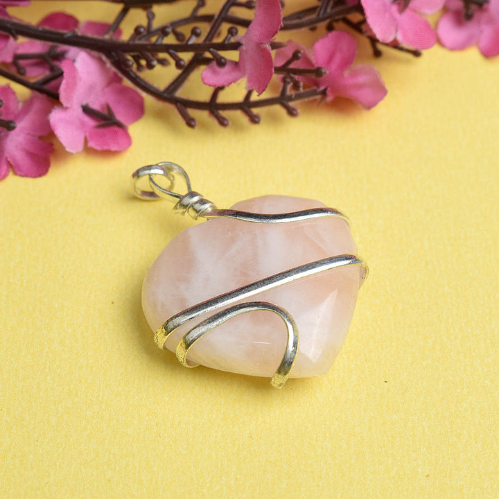 Rose Quartz Pendant Heart Wire Wrapped Crystal Stone Pendant – Satvikworld.com
