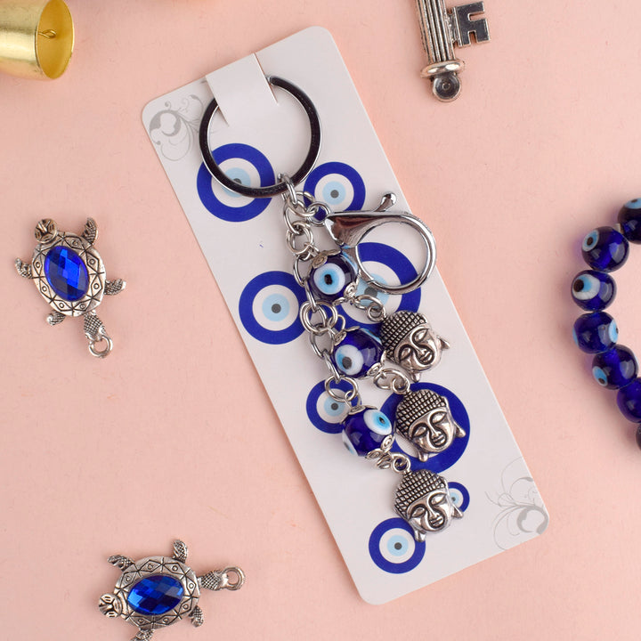 Silver 3 Tier Buddha Keychain with Evil Eye | Buy Online | Satvikworld.com