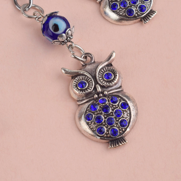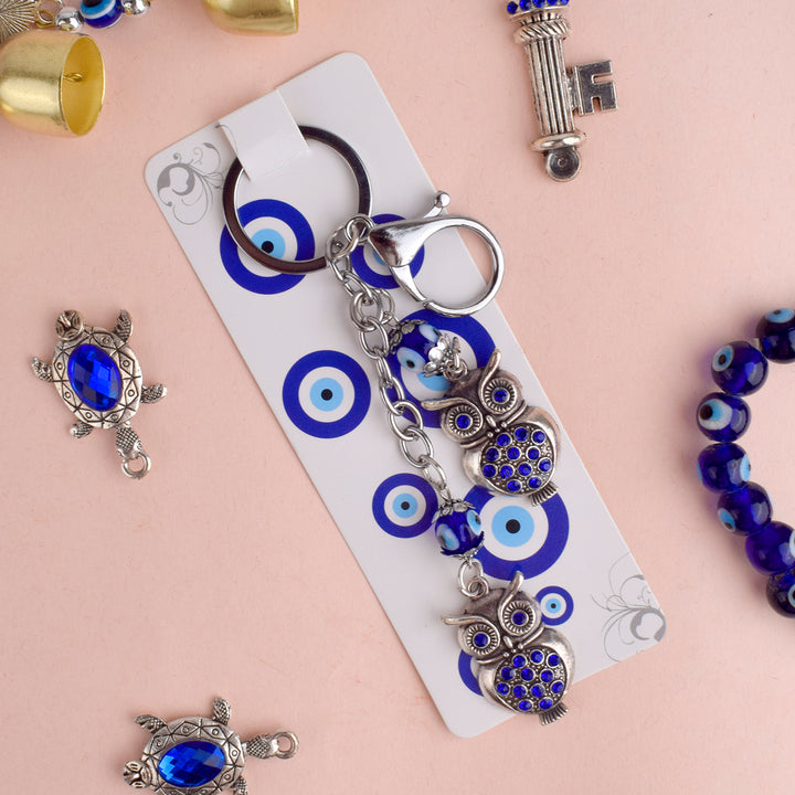 Silver Double Owl Keychain with Evil Eye – Satvikworld.com