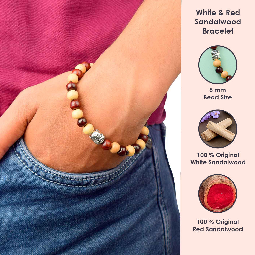 Shop Online Buddha Red & White Sandalwood Bracelet | Satvikworld.com