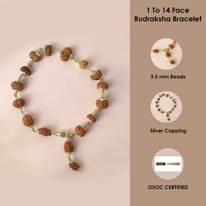 Certified 1 to 14 Face Rudraksha Bracelet with Silver Capping