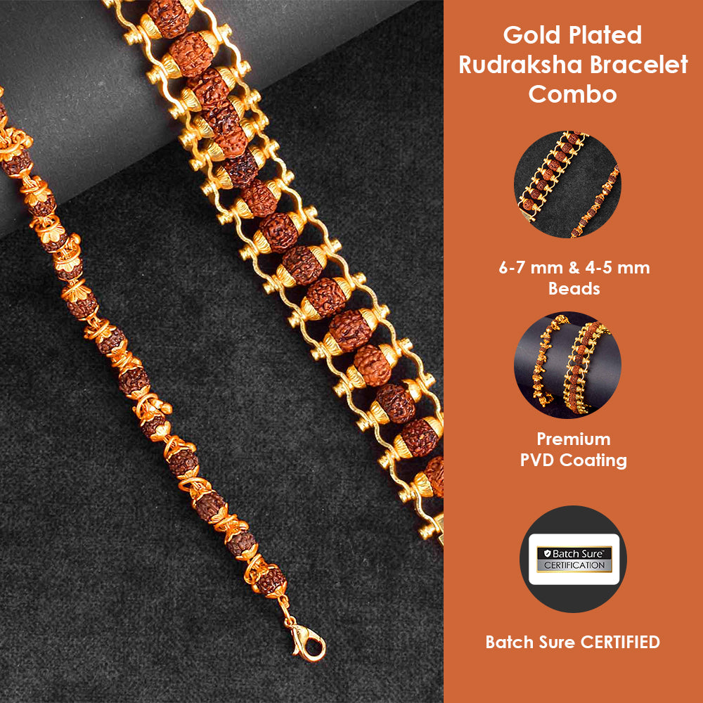 Gold Plated Rudraksha Bracelet with Premium PVD Coating (Combo)
