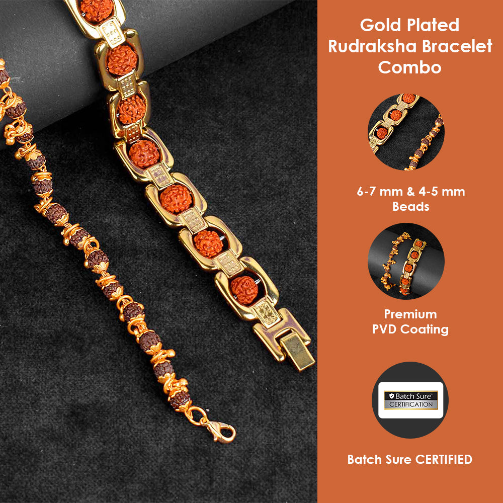 Premium PVD Coated Gold Plated Rudraksha Bracelet Combo