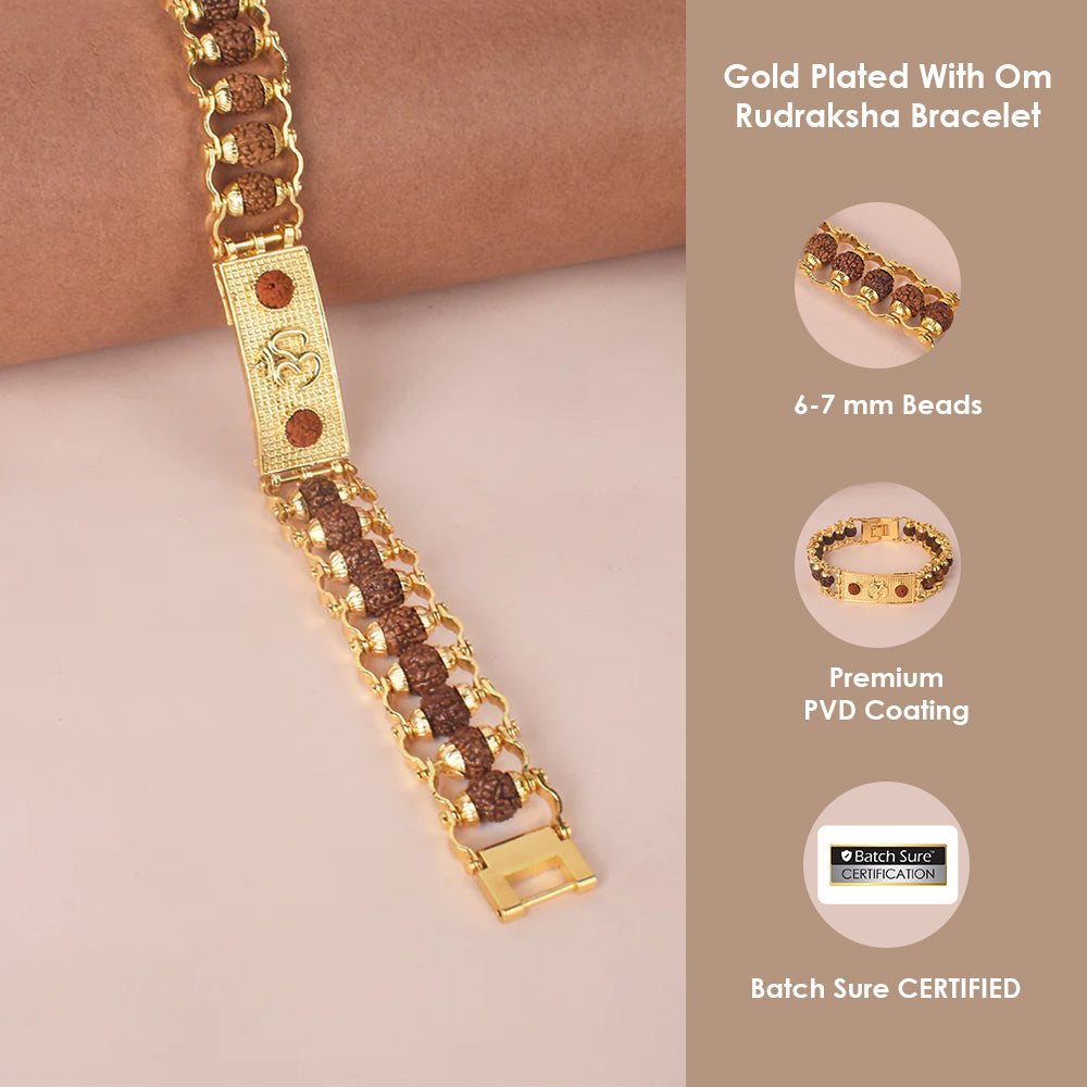 • Package Contains: 1Pc PVD Gold Platted Rudraksha Bracelet with Om