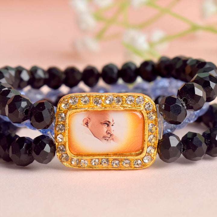 Buy Online | Black Purplish Blue Triple Layer Guruji Swaroop Bracelet | satvikworld.com – Satvikworld.com