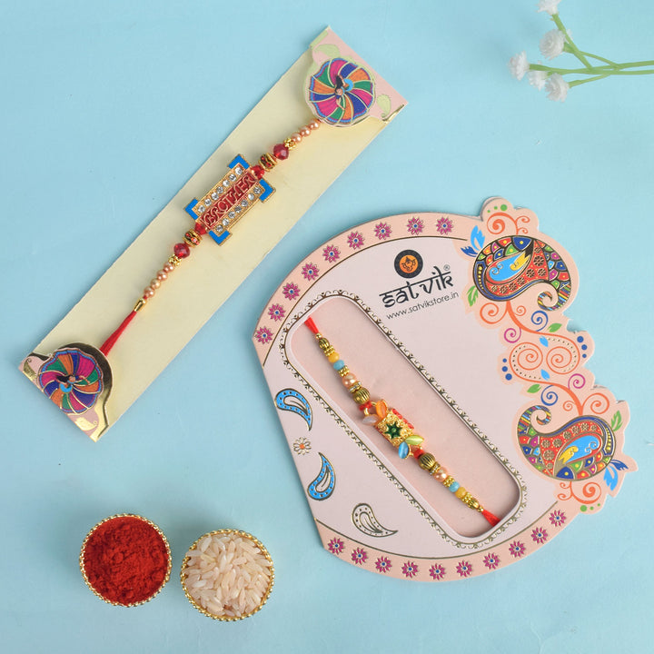 Dazzling Beaded Bhaiya Rakhi Set of 2