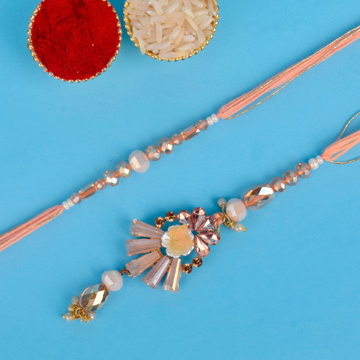 • About Product: Celebrate the eternal bond of love and tradition with this beautifully crafted Couple Rakhi Set designed for Bhaiya and Bhabhi. The men’s rakhi is bold and elegant, while the women’s lumba is graceful and festive—perfectly complementing each other as a symbol of togetherness.