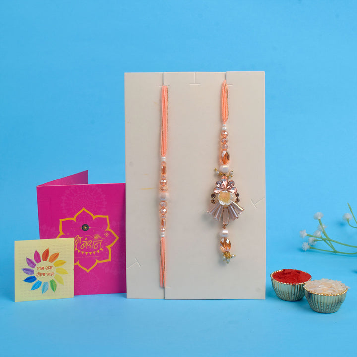 • Package: 1 Men Rakhi, 1 Women Lumba Rakhi, Roli Chawal Pack, Ram & Sita Theme Stickers