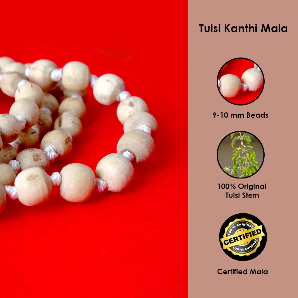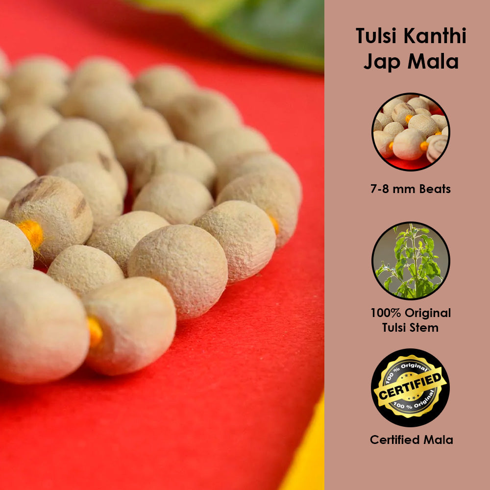 - Worn around the neck, the Kanthi Tulsi Mala offers protection from negative energies.