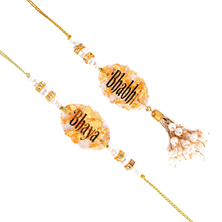 Shubh Mangal Bandhan Resin Bhaiya Bhabhi Rakhi Set With Premium Box