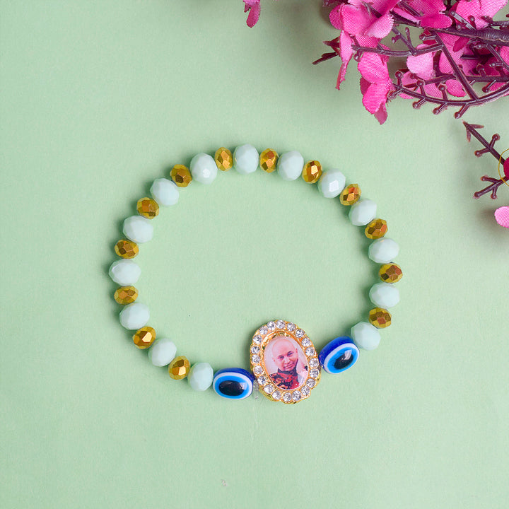 • Item Name: SkyBlue Evil Eye Beads Bracelet with Jai Guruji Swaroop Handmade Bracelets for Men and Women