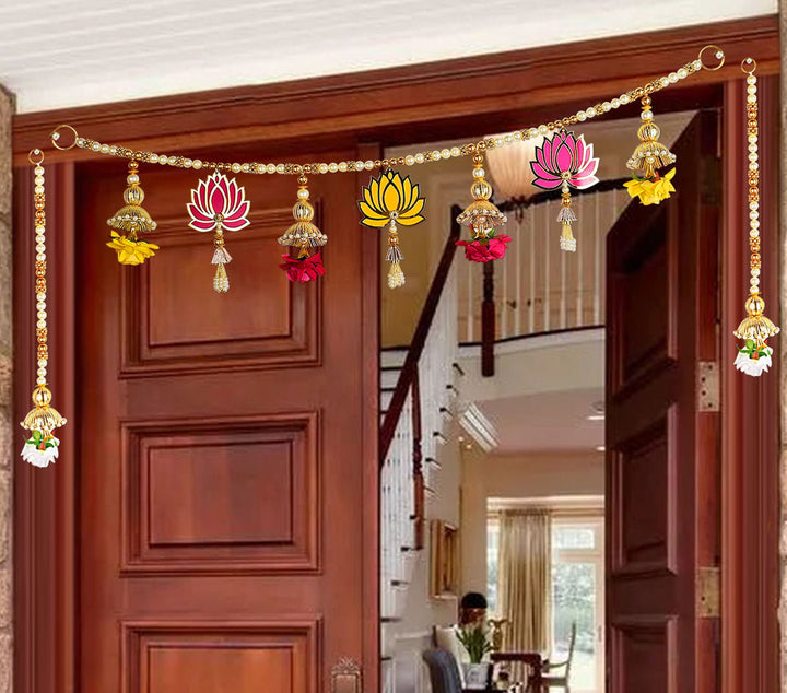 Traditional Lotus Toran with Side Latkans (Color-Assorted)