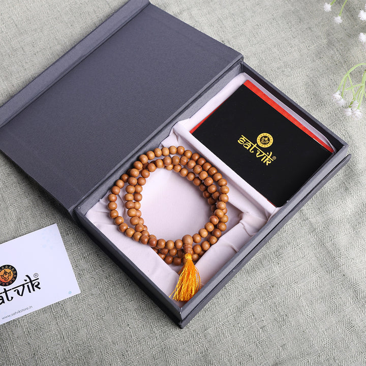 White Sandalwood Jap Mala | Original White Sandalwood Mala | Mala for Vishnu and Lakshmi Jaap | Pure Chandan Mala for Puja | Natural White Sandalwood Prayer Beads |