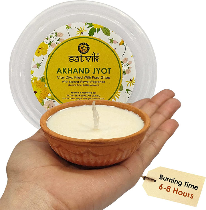 Buy Now- Satvik Pure Desi Ghee Akhand Jyot - 6-8 Hrs Burning Clay Diya – Satvikworld.com