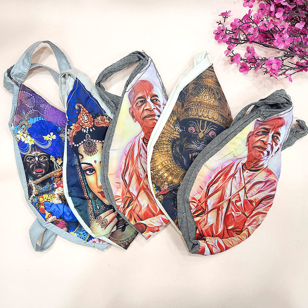 Prabhupada Jap Mala Bag | Digital Printed Cotton Bag | Devotional Accessory | Spiritual Carry Bag | Temple Essentials | Meditation Bag | Religious Item Storage | Printed Cotton Jholi | Sacred Spiritual Bag | Assorted Designs