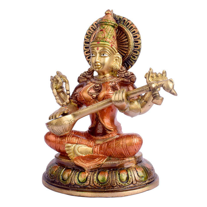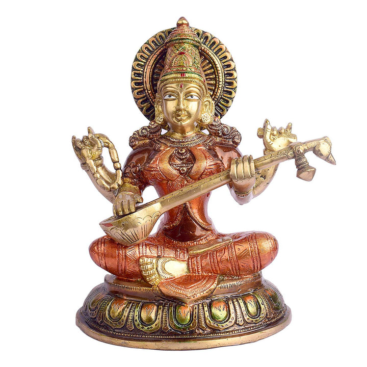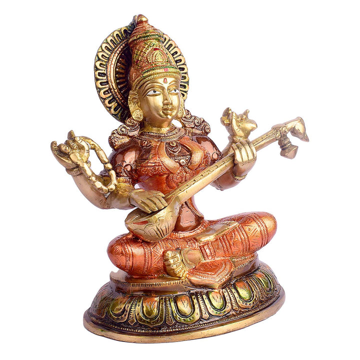 Buy 10.2 Inch Beautiful Brass Saraswati Idol | Satvikworld.com