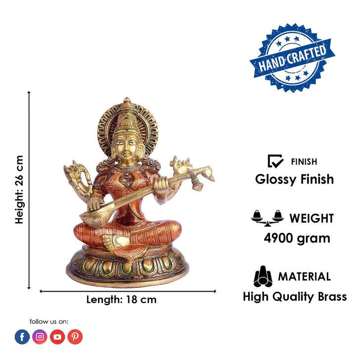 • Material: The Saraswati Mata Murti is made from High-Quality Brass Material