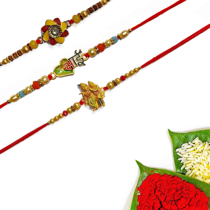 Satvik Beautiful Golden Beads Rakhi Set Of 3