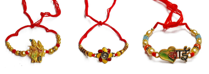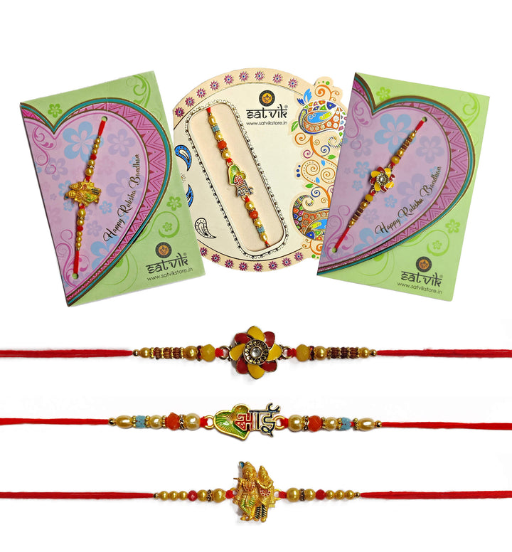 Satvik Beautiful Golden Beads Rakhi Set Of 3 – Satvikworld.com