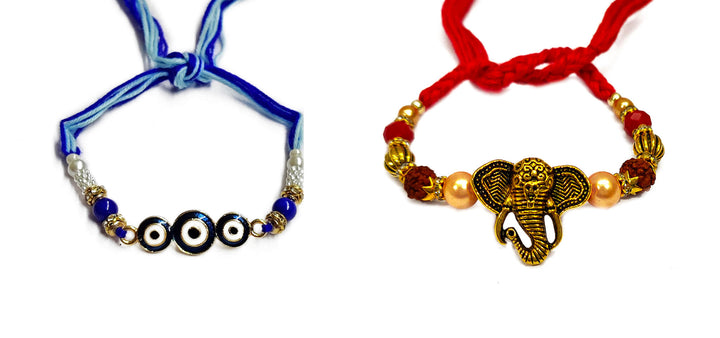Satvik Combo Of Evil Eye and Elephant Face Rakhi – Satvikworld.com