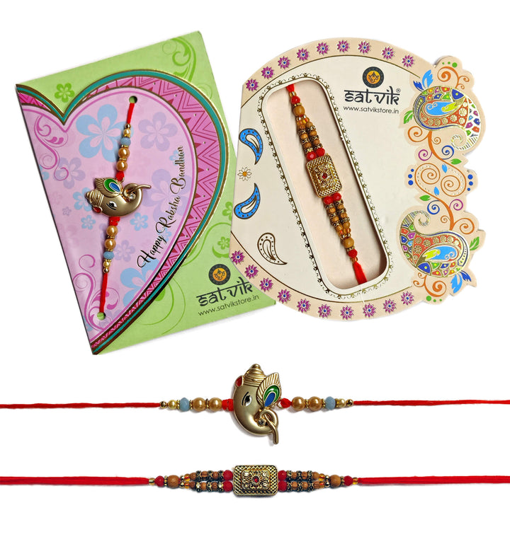 Satvik Ganesha Rakhi with Stone Rakhi Set of 2