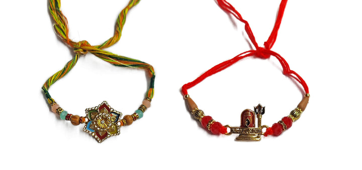Satvik Set Of 2 Shivling and Multicolor Flower Rakhi – Satvikworld.com