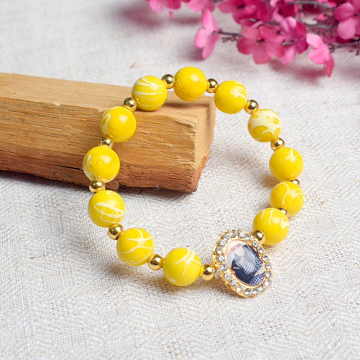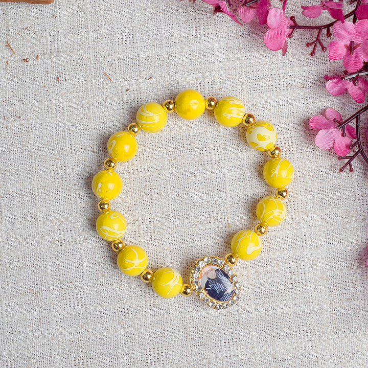 Yellow Round Pearl Bracelet with Jai Guruji Swaroop Handmade Bracelets for Men and Women