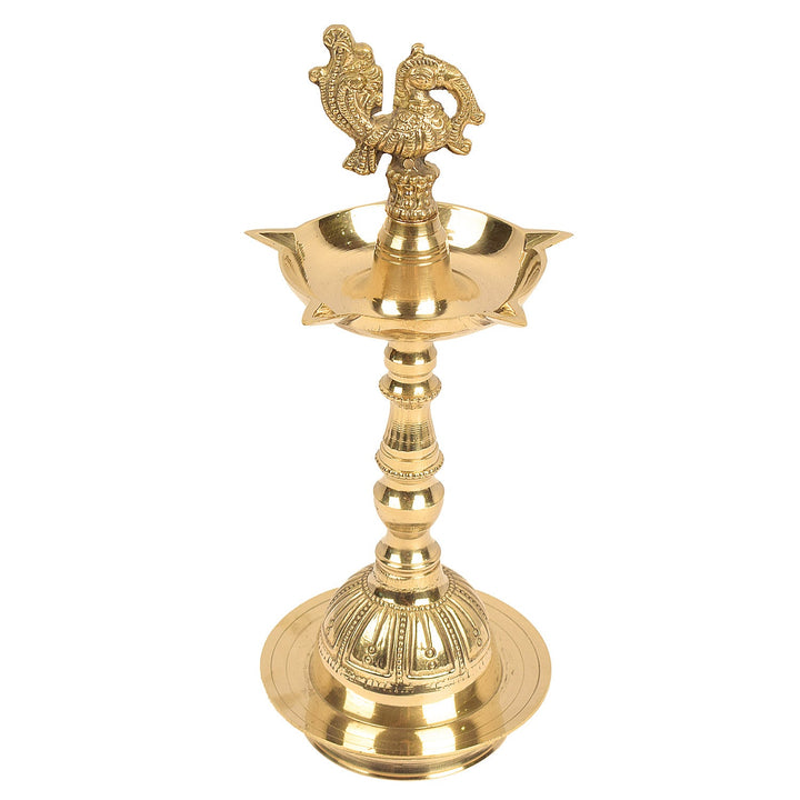 9-10 Inch Embossed Brass Peacock Kerala Samai Diya – Satvikworld.com