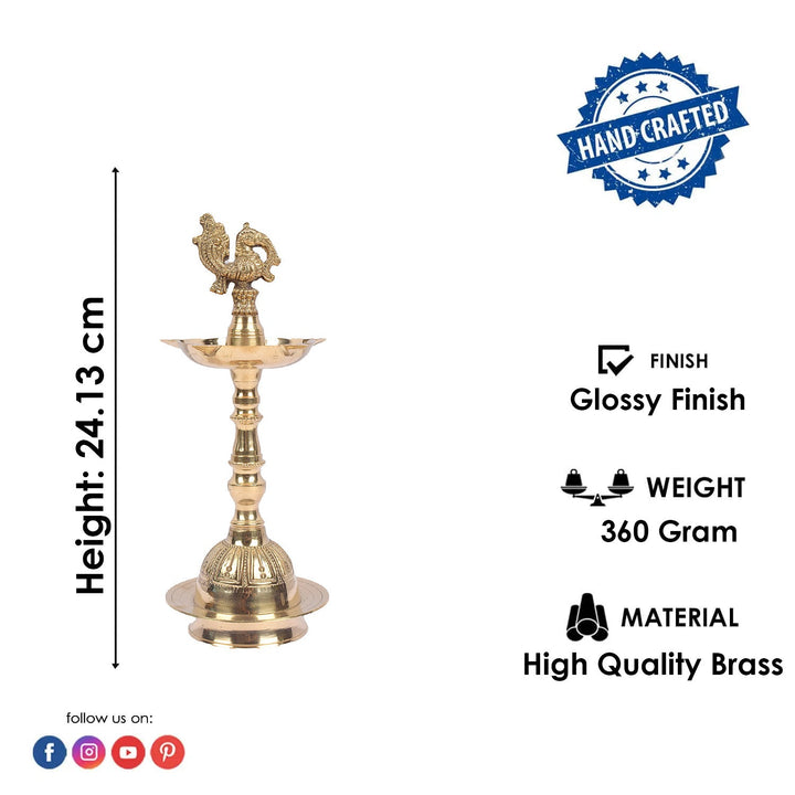 9.5 Inch Embossed Brass Peacock Kerala Samai Diya | Brass Peacock Diya | Kerala Samai Diya | Embossed Brass Diya | Spiritual Brass Lamp | Traditional Kerala Pooja Lamp | Brass Oil Lamp | Pooja Diya | Kerala Temple Diya | Handcrafted Brass Deepam | Peacock Design Diya | Brass Ritual Lamp