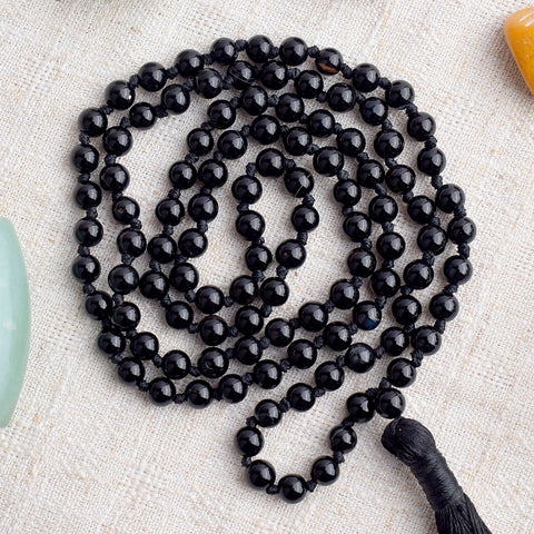 🖤 Black Hakik Mala (Black Agate) – Grounding, protection, and inner strength
