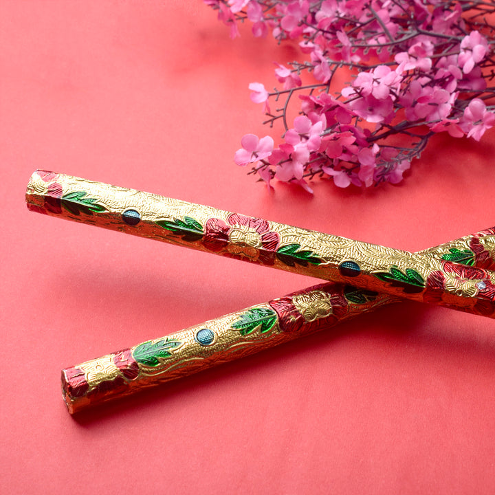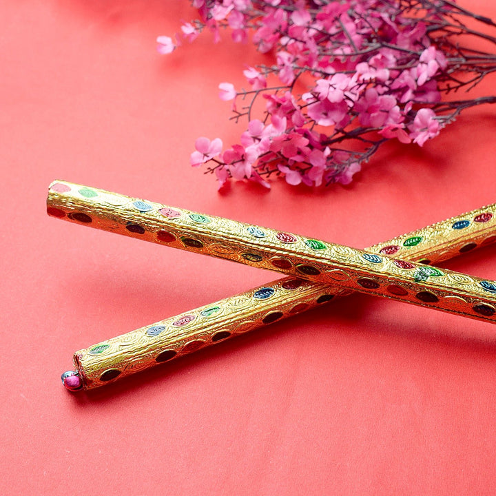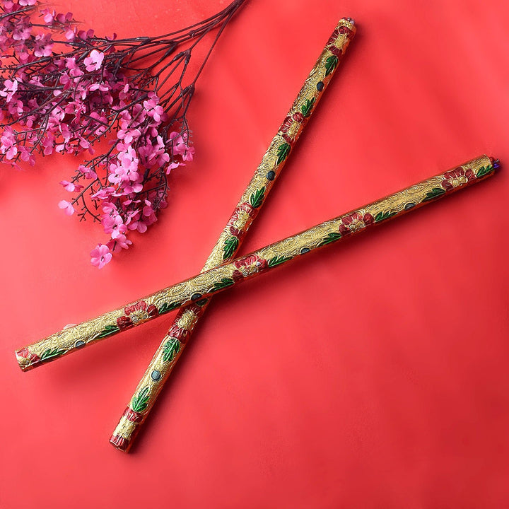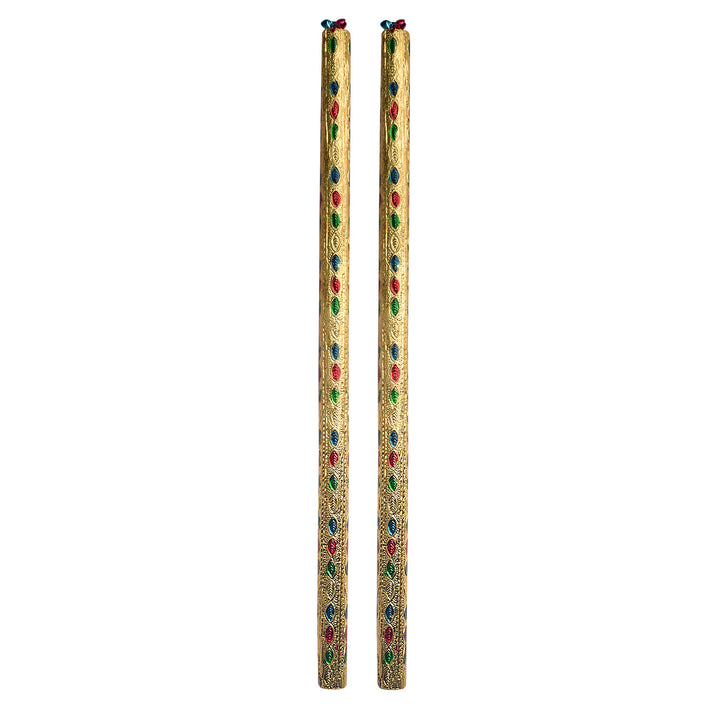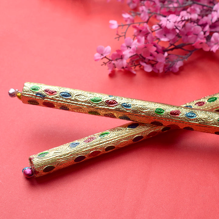 • Material: The Dandiya Sticks are made from High Quality Wooden Sticks , Decorated with Lace Work all over the Dandiya Sticks to give it more Festive Look.