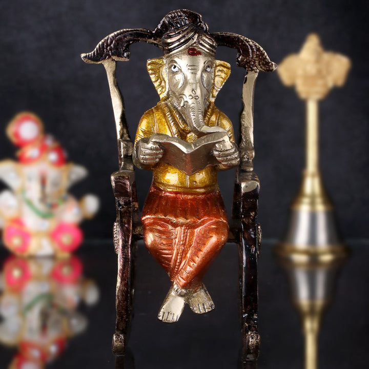 • Item Product: Pure Brass Reading Book Ganesha Statue