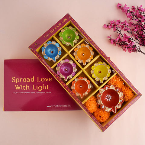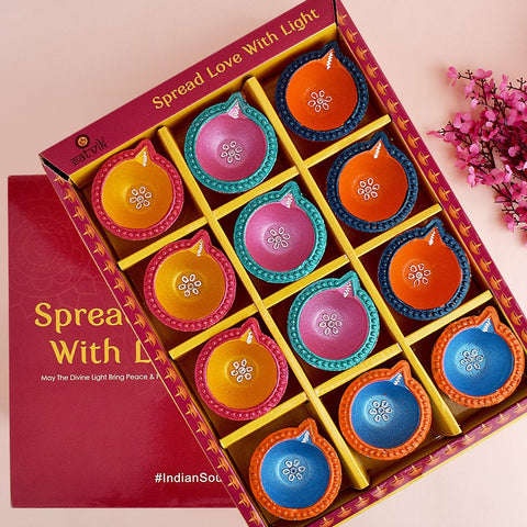 Our carefully curated assortment includes a variety of traditional and contemporary Diwali essentials that will elevate your celebrations. From the timeless Clay Diyas to the ornate Brass Diyas, our collection showcases the craftsmanship and artistry that symbolize the festival's essence. Illuminate your space with our Decorative and Metal Diyas, designed to add radiance to every corner.