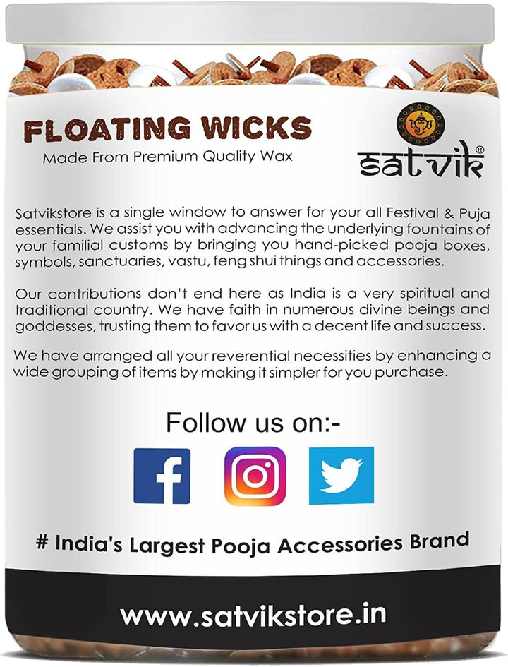 SATVIK 225 Pc Round Floating Wicks for Oil Cups with Cork Disc Holders