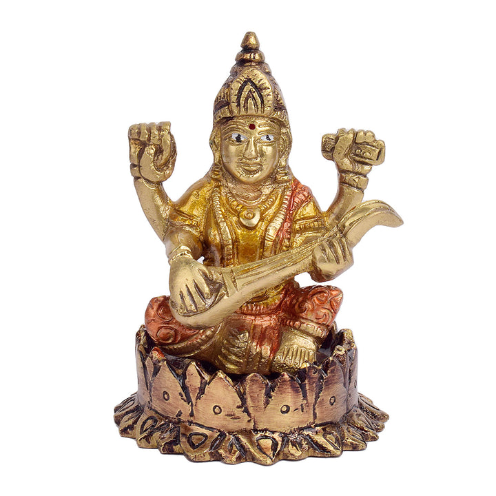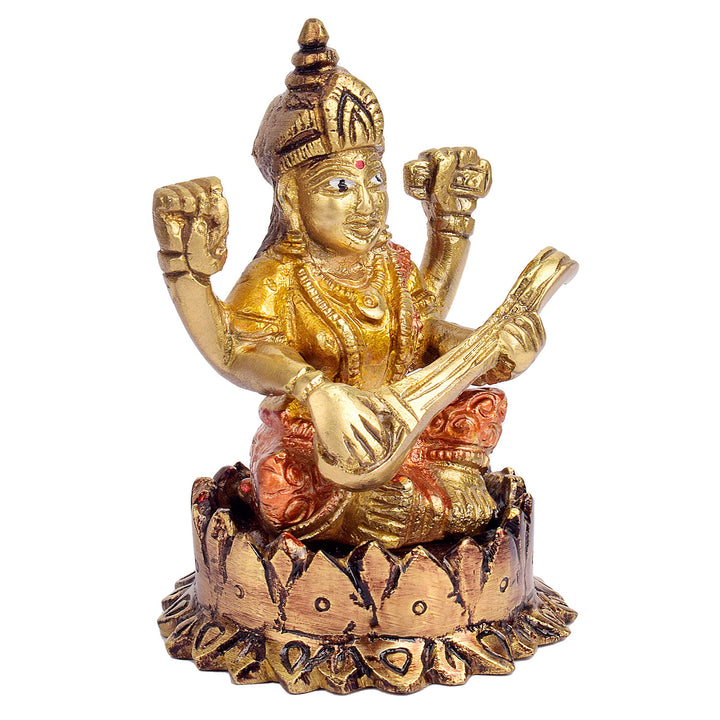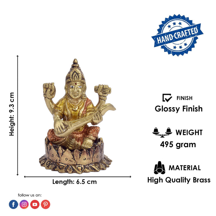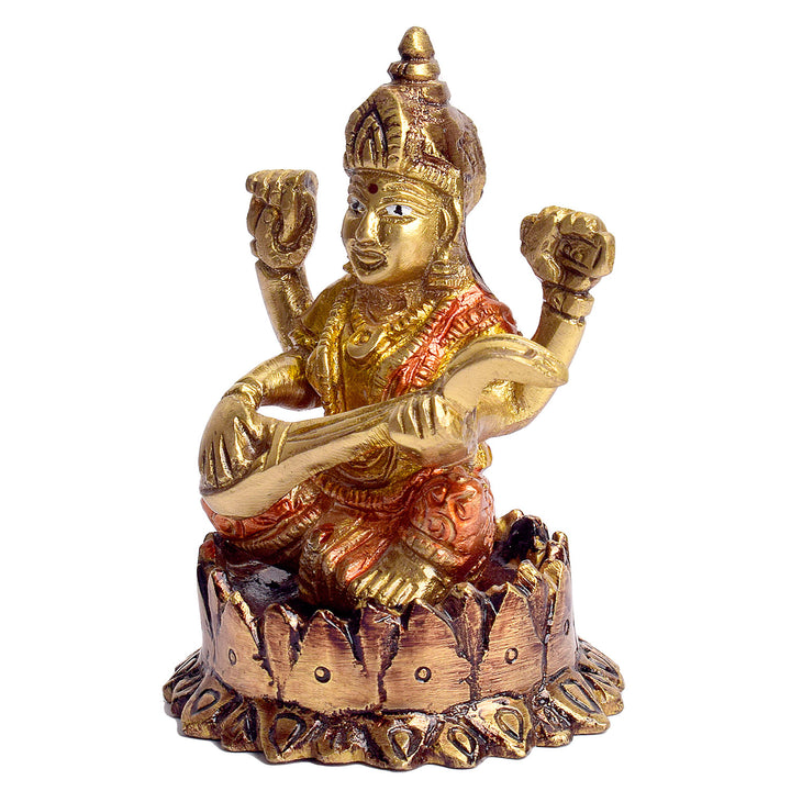 • Material: The Saraswati Mata Murti is made from High-Quality Brass Material