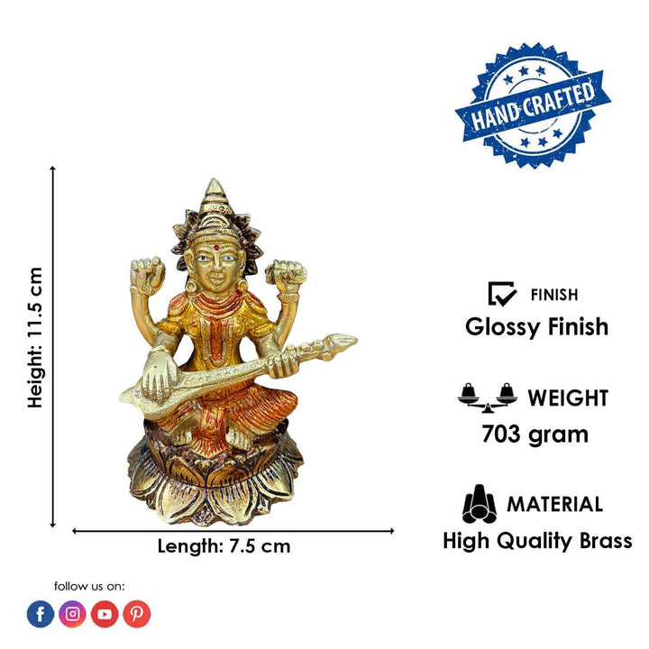 • Material: The Saraswati Mata Murti is made from High-Quality Brass Material