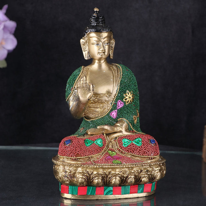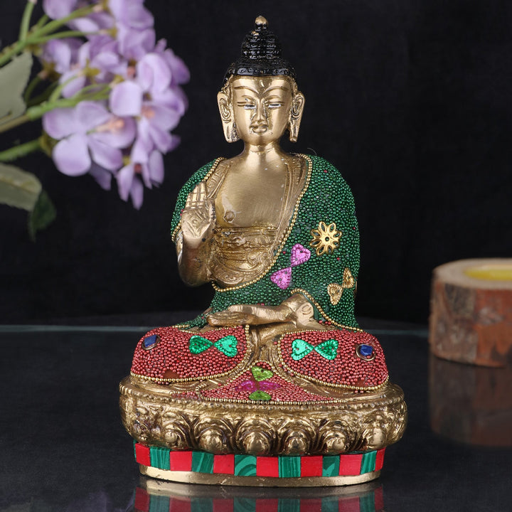 Decorated brass Buddha Idol | Buy Online | Satvikworld.com