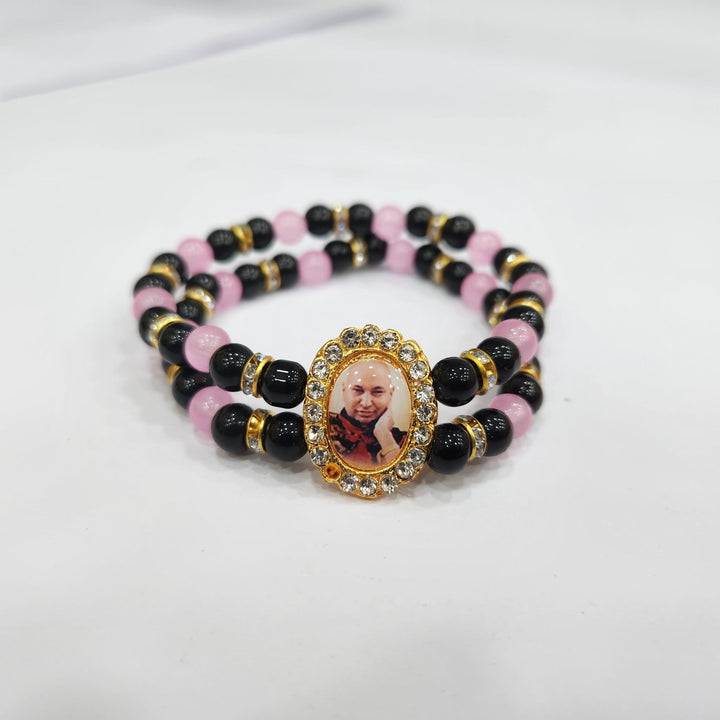 Black And Baby Pink Pearl Bracelet with Jai Guruji Swaroop Handmade Bracelets for Men and Women