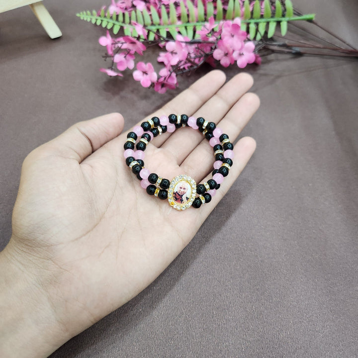 Black And Baby Pink Pearl Bracelet with Jai Guruji Swaroop Handmade Br – Satvikworld.com