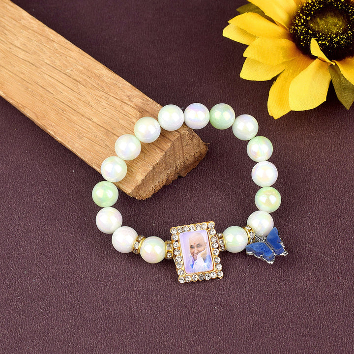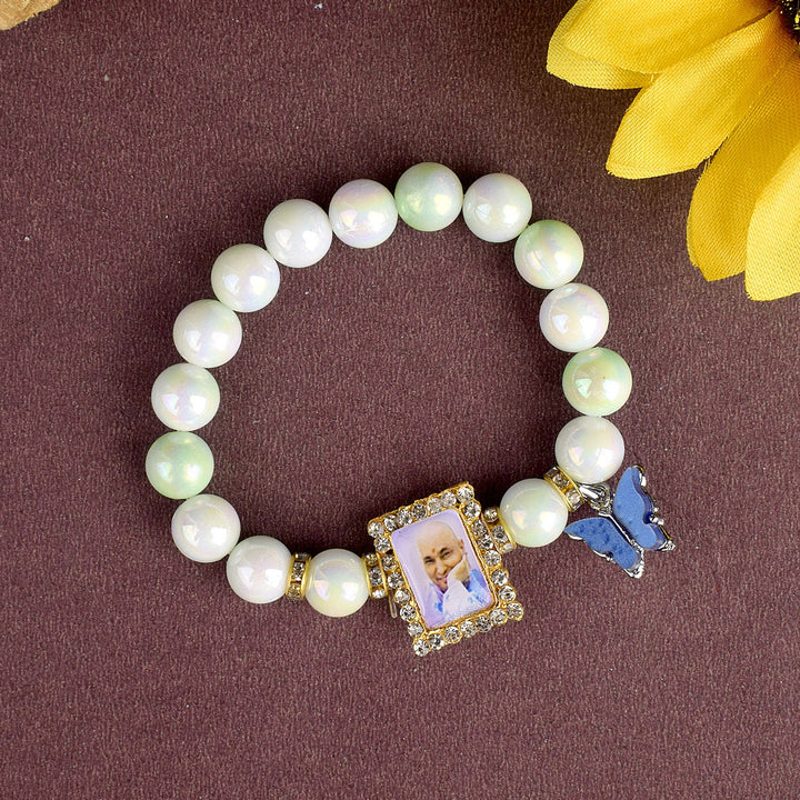 Butterfly Green & White Shade Bracelet with Jai Guruji Swaroop Handmade Bracelets