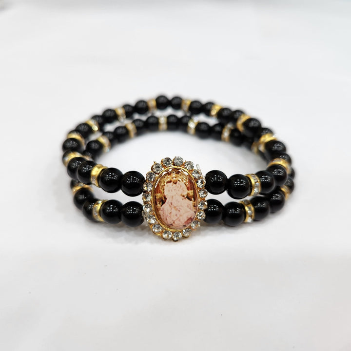 • Item Name: Double Band Round Pearl Bracelet with Jai Guruji Swaroop Handmade Bracelets for Men and Women