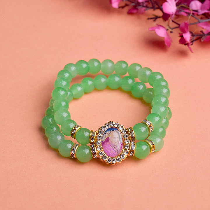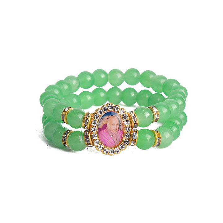 Light Green Stone Bracelet with Jai Guruji Swaroop