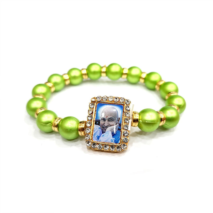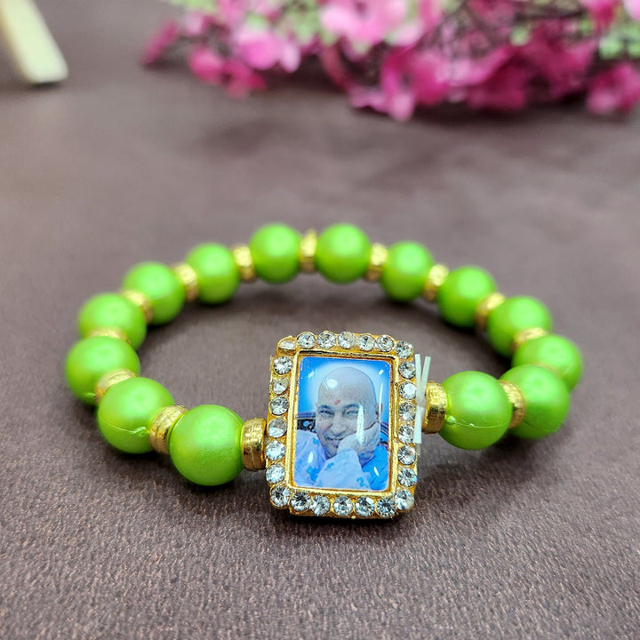 Lime Green Round Pearl Bracelet with Jai Guruji Swaroop – Satvikworld.com