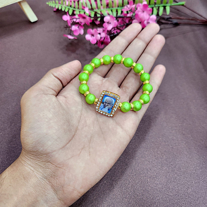 • Item Name: Lime Green Round Pearl Bracelet with Jai Guruji Swaroop Handmade Bracelets for Men and Women